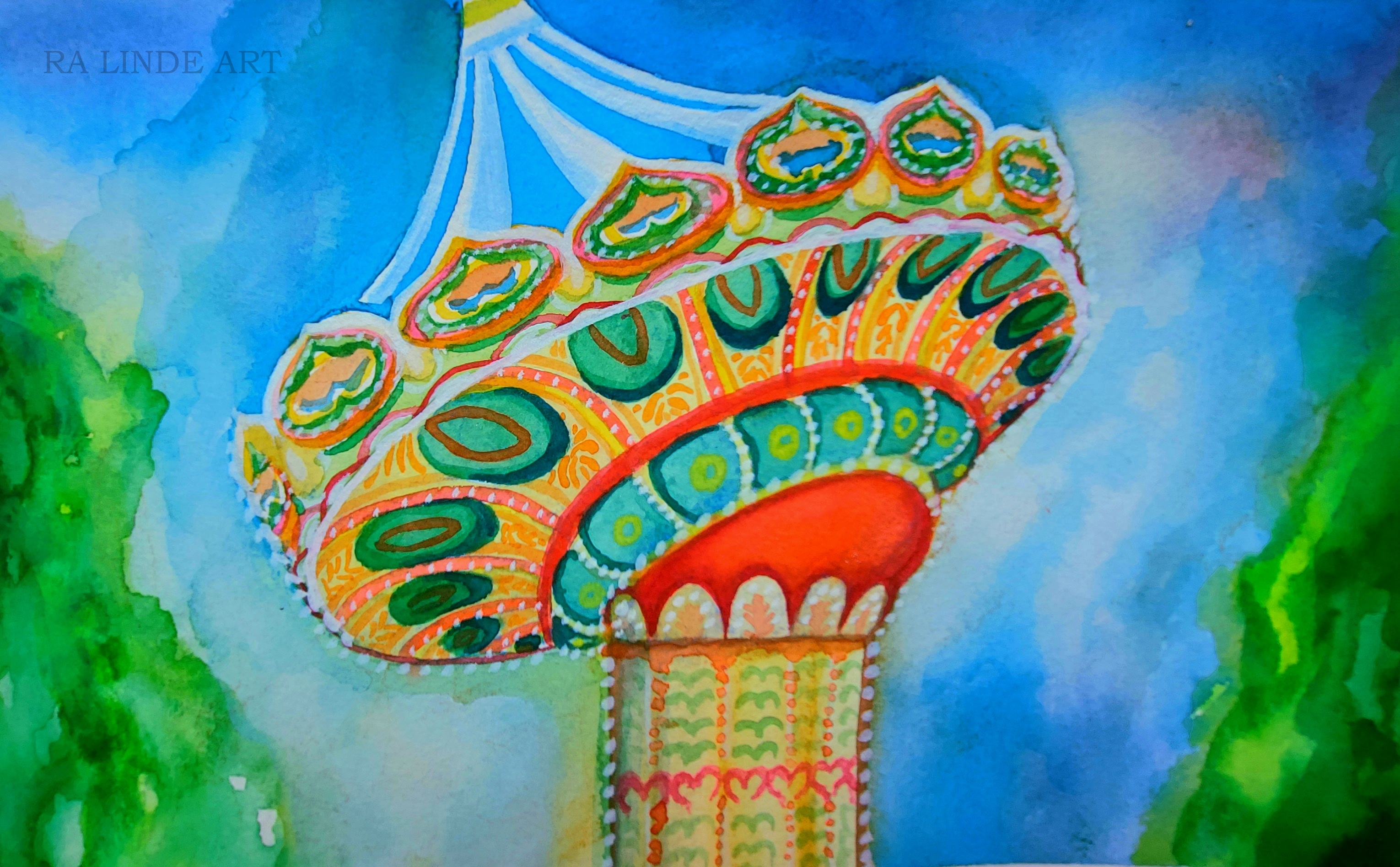 A print of a watercolour-painting from the Tivoli of Copenhagen, made by Ellen RA Linde.