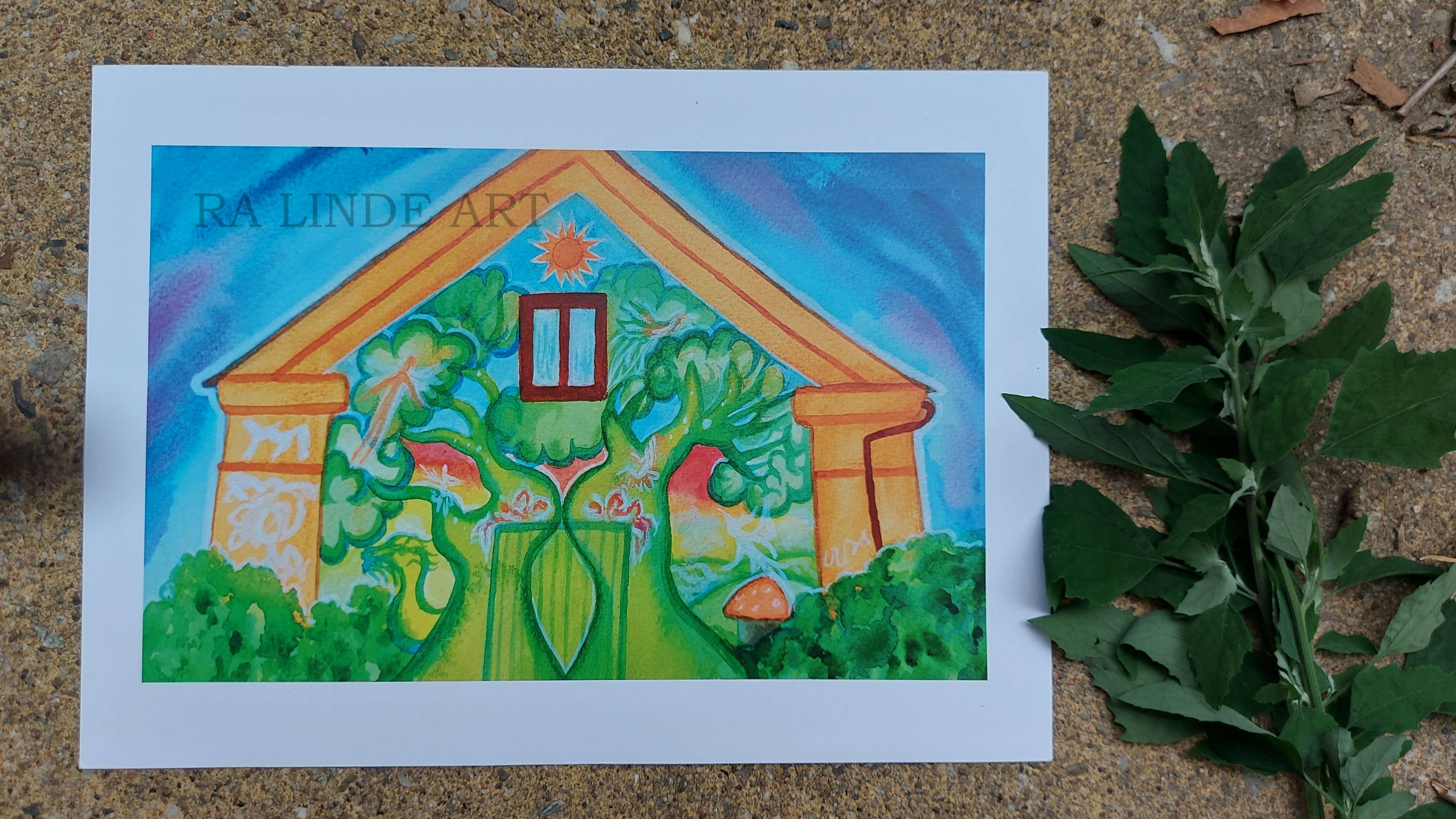 This print is re-created from an original watercolour painting (size ca. A4 of original painting) from summer of 2022 (perfected via photo-editing) by Ra Linde.