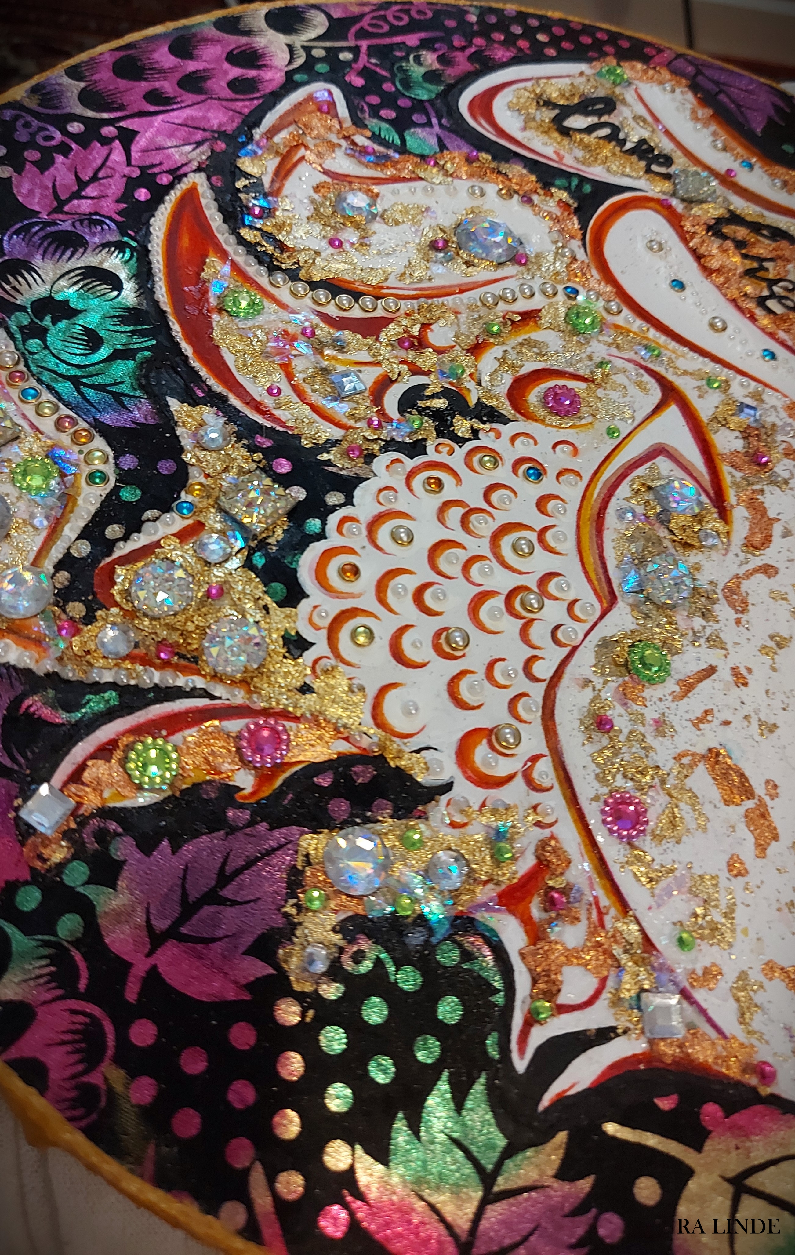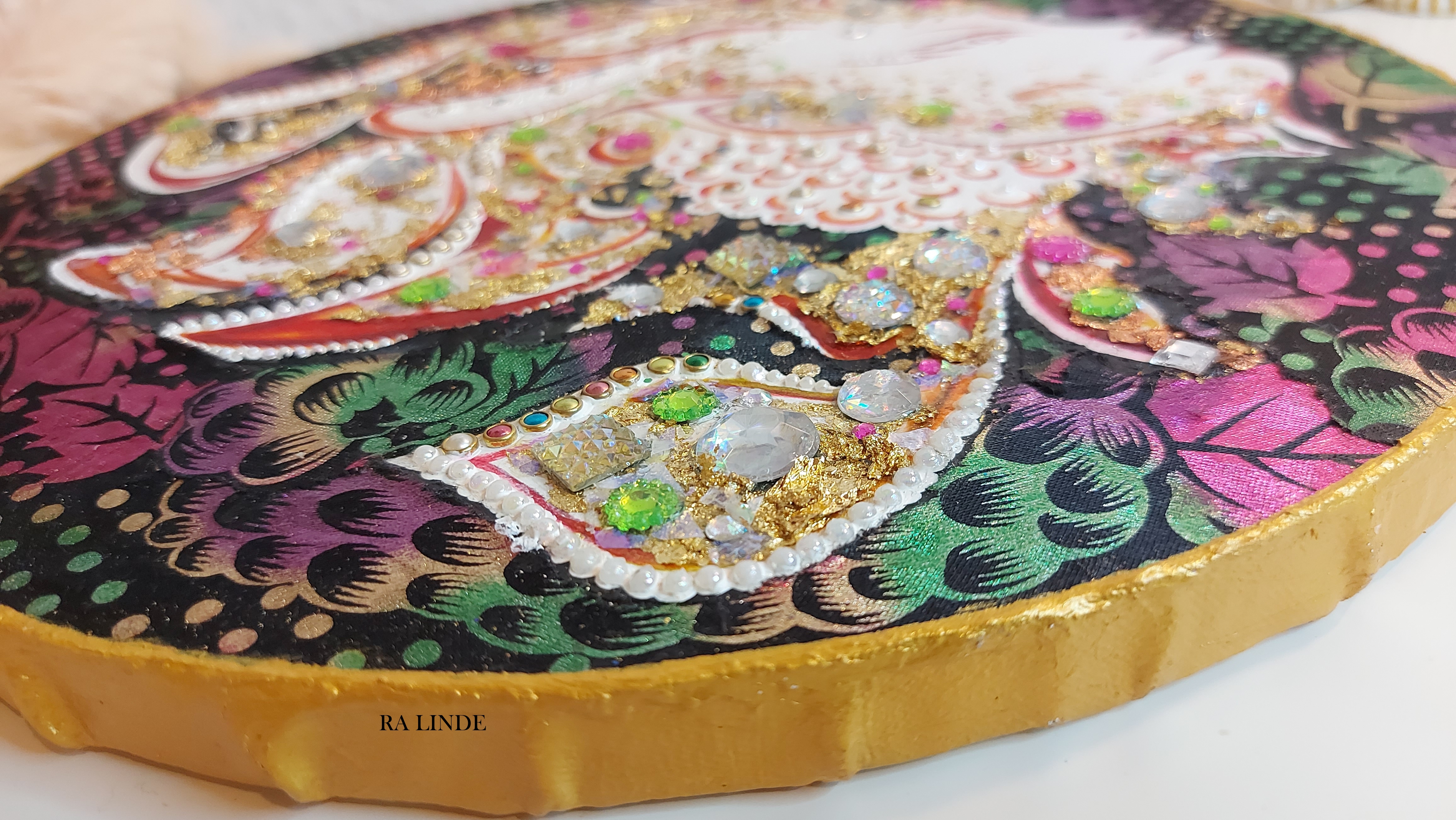 OBS. The gemstones and gold used in this artwork are imitations of gems and gold.