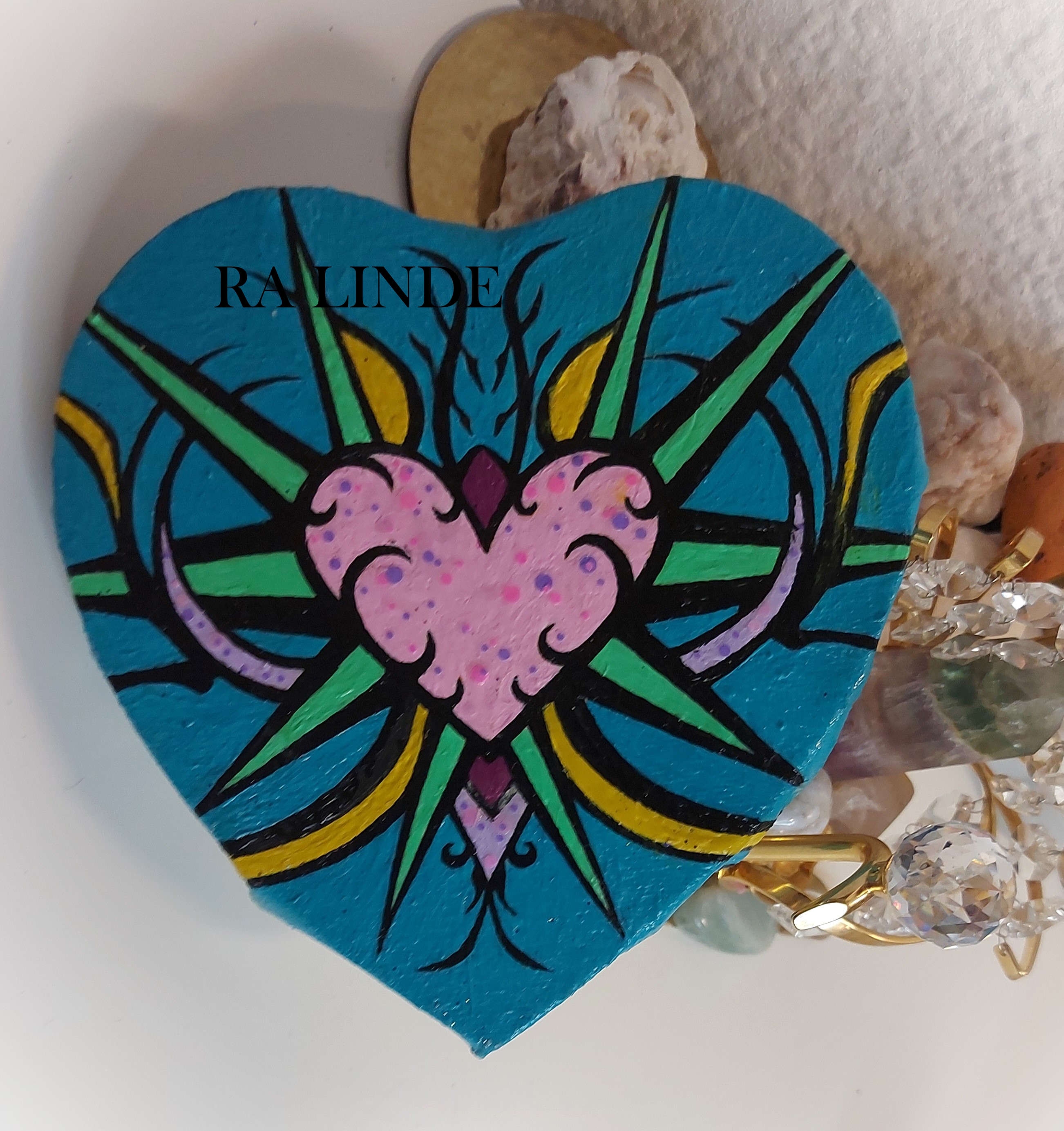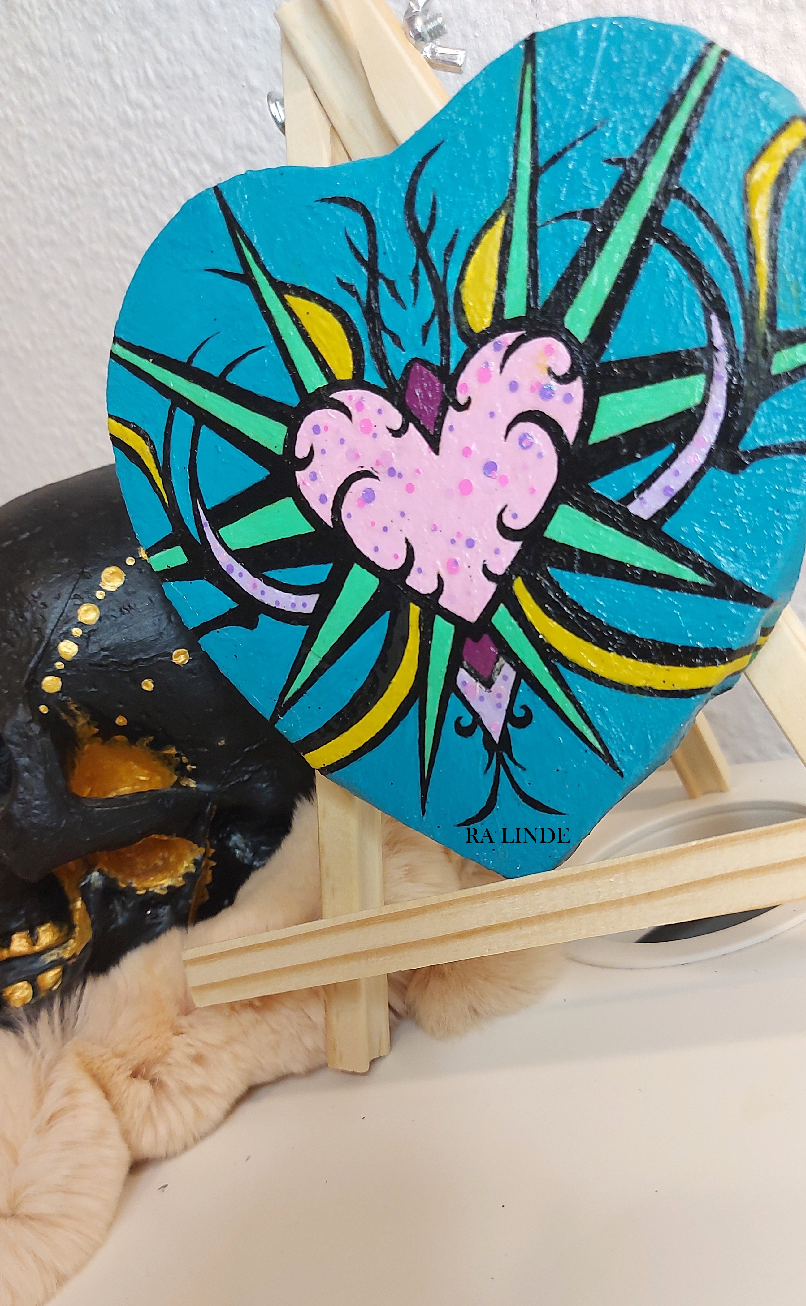 Original mini/artwork by Ra Linde, painted on Heart shaped canvas.