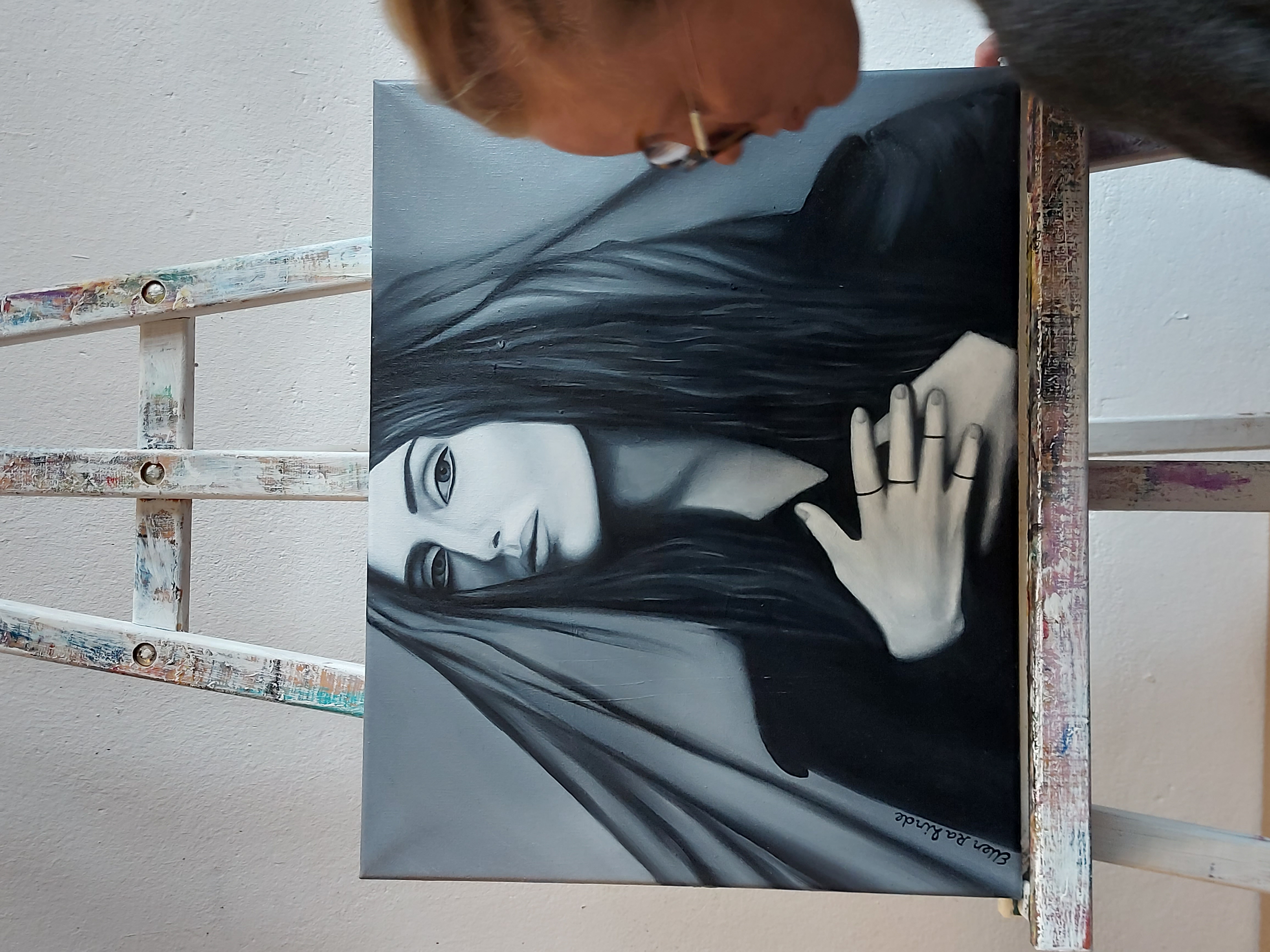 One of Linde´s few paintings in black & white. Made with only the colors Titanium White and Lamp Black and mediums for oil.