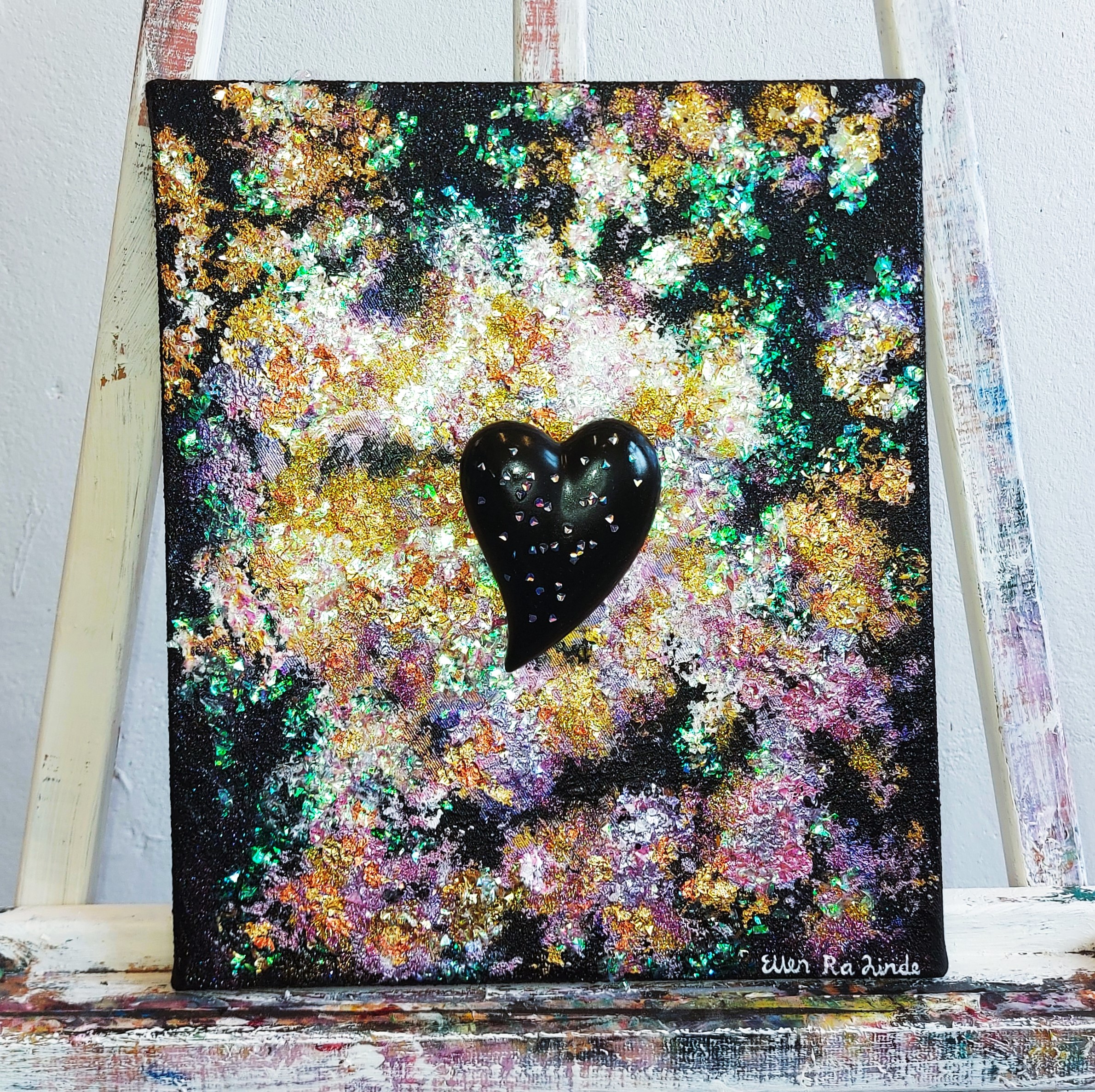 The artwork will be safely prepared for shipping within protective packaging. Details and decorations attached onto this artwork has been created to last, containing many different layers of decor attached with hardening special mediums. A few glitter-flakes might fall off when handled, this is expected and won´t change the appearance of your artwork.