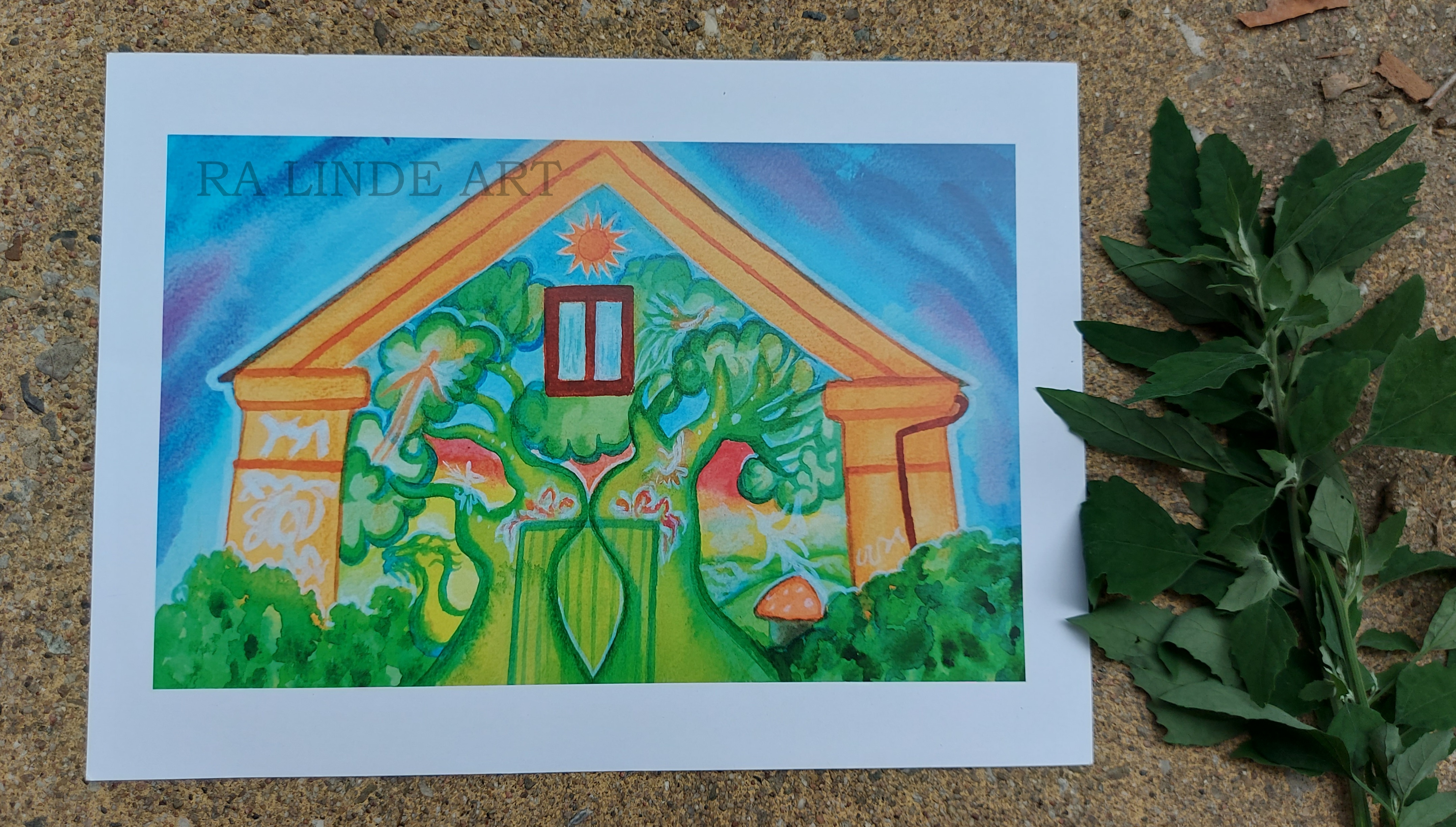 This print is re-created from an original watercolour painting (size ca. A4 of original painting) from summer of 2022 (perfected via photo-editing) by Ra Linde.