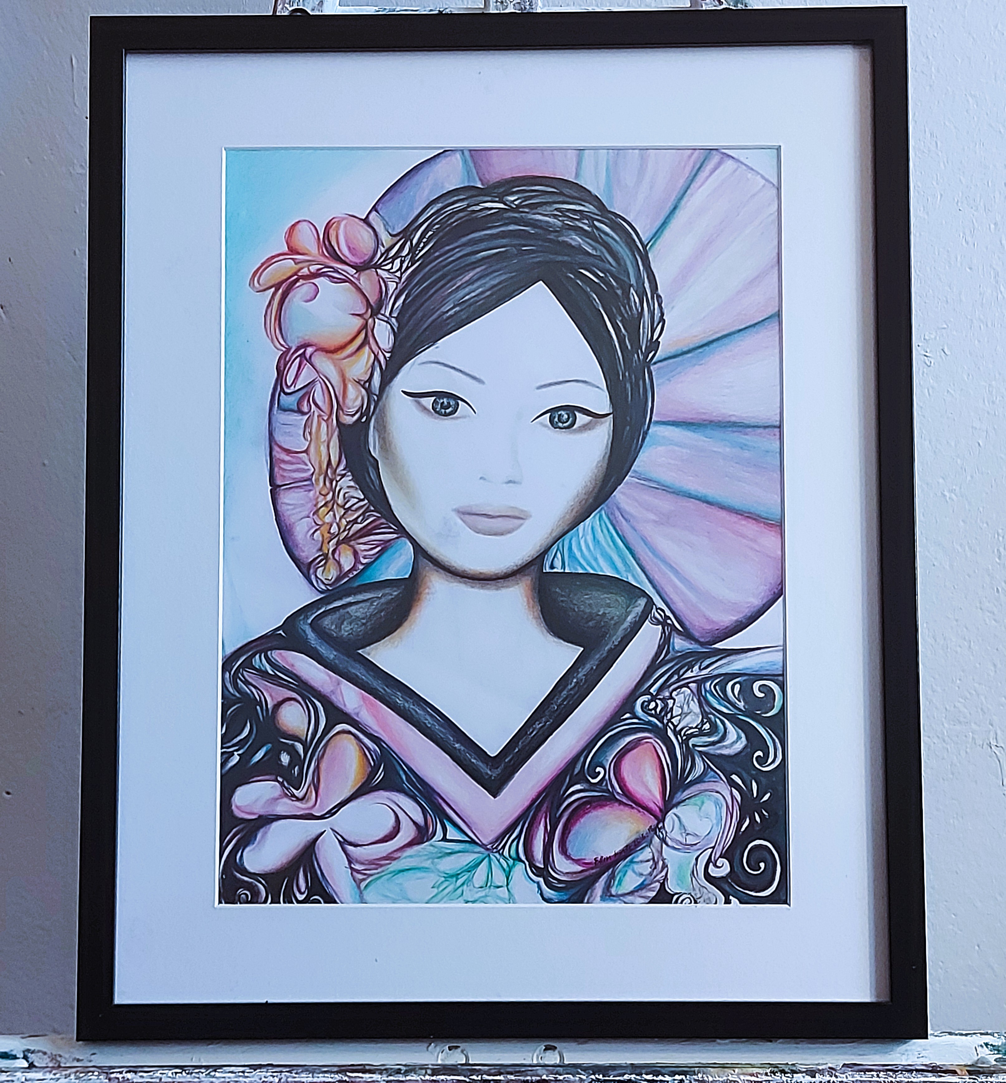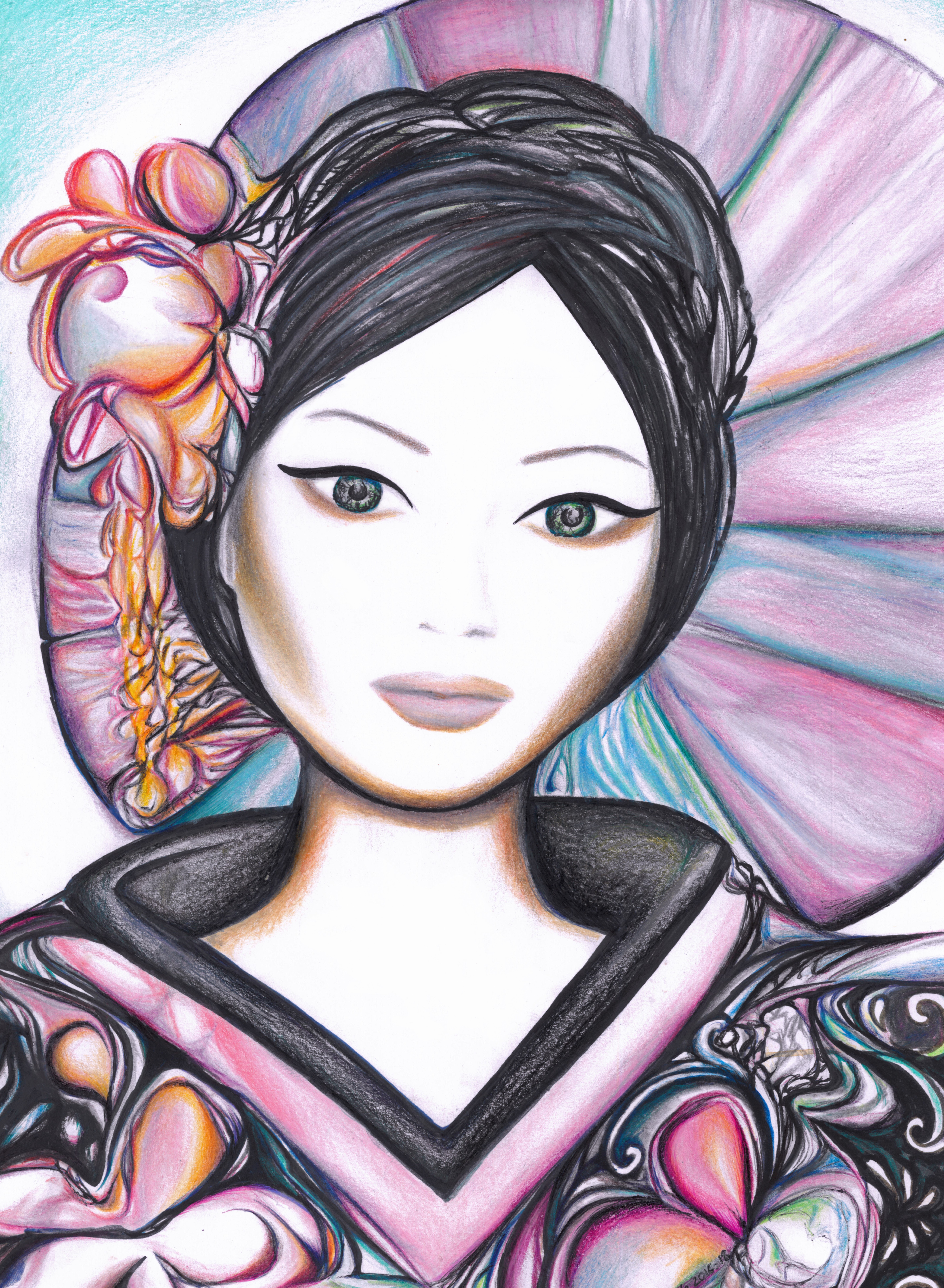 Original illustration with pencils on fine art white paper, by Ellen (Ra Linde)