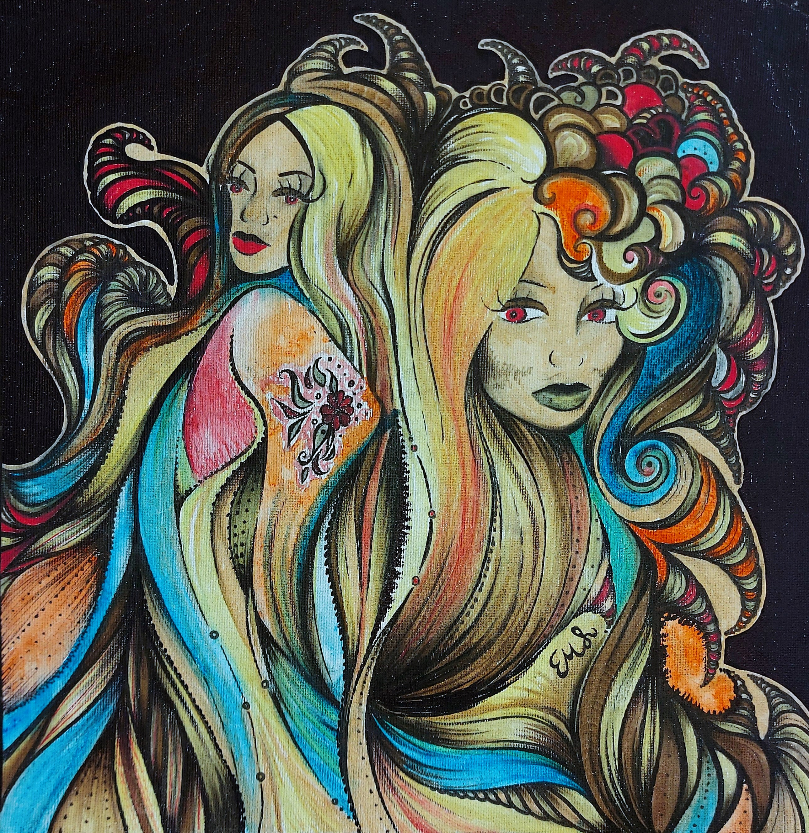 Original artwork created with pens on canvas from 2012 by Ellen (Ra Linde)