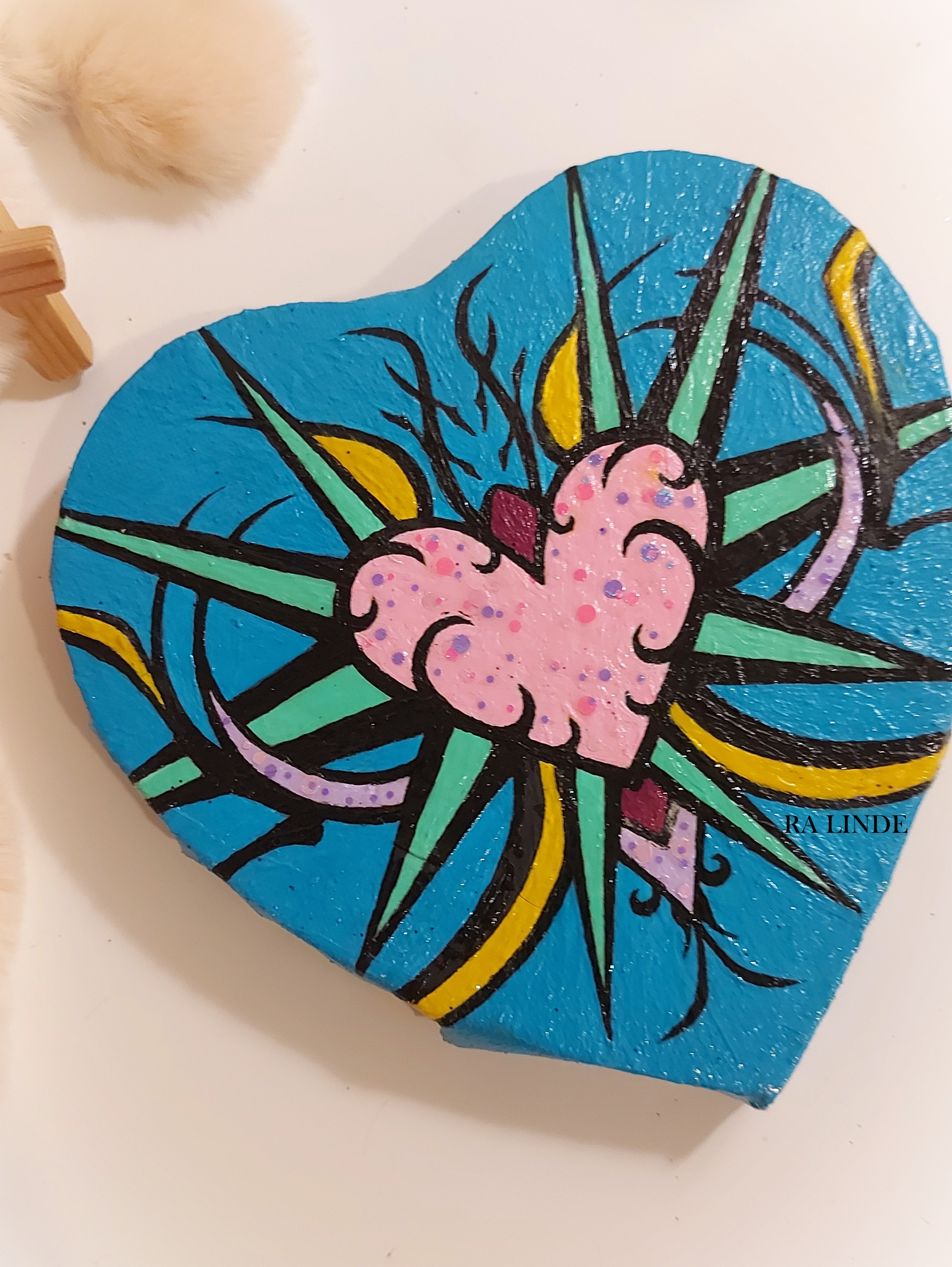 Original mini/artwork by Ra Linde, painted on Heart shaped canvas.
