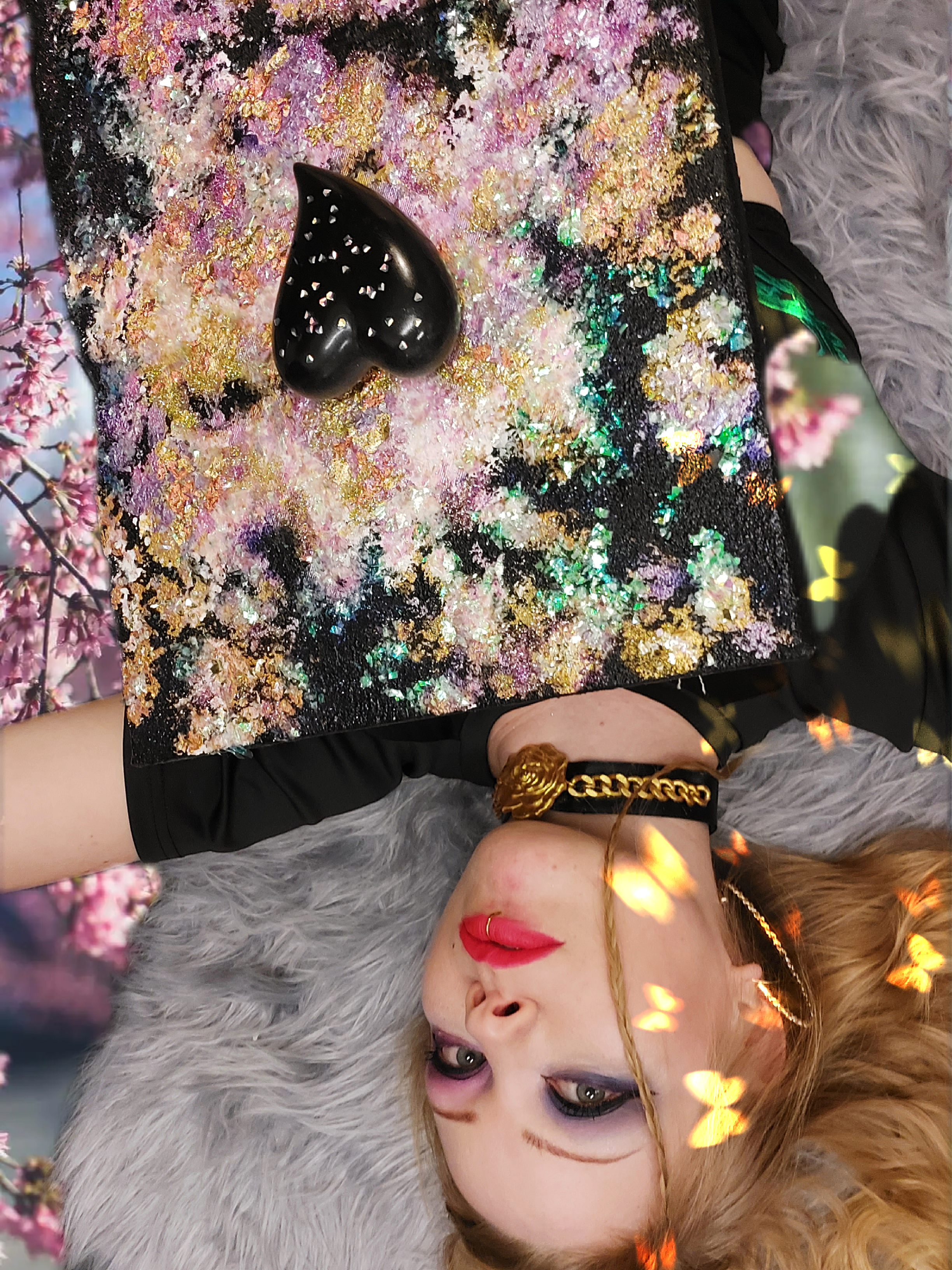The artwork will be safely prepared for shipping within protective packaging. Details and decorations attached onto this artwork has been created to last, containing many different layers of decor attached with hardening special mediums. A few glitter-flakes might fall off when handled, this is expected and won´t change the appearance of your artwork.